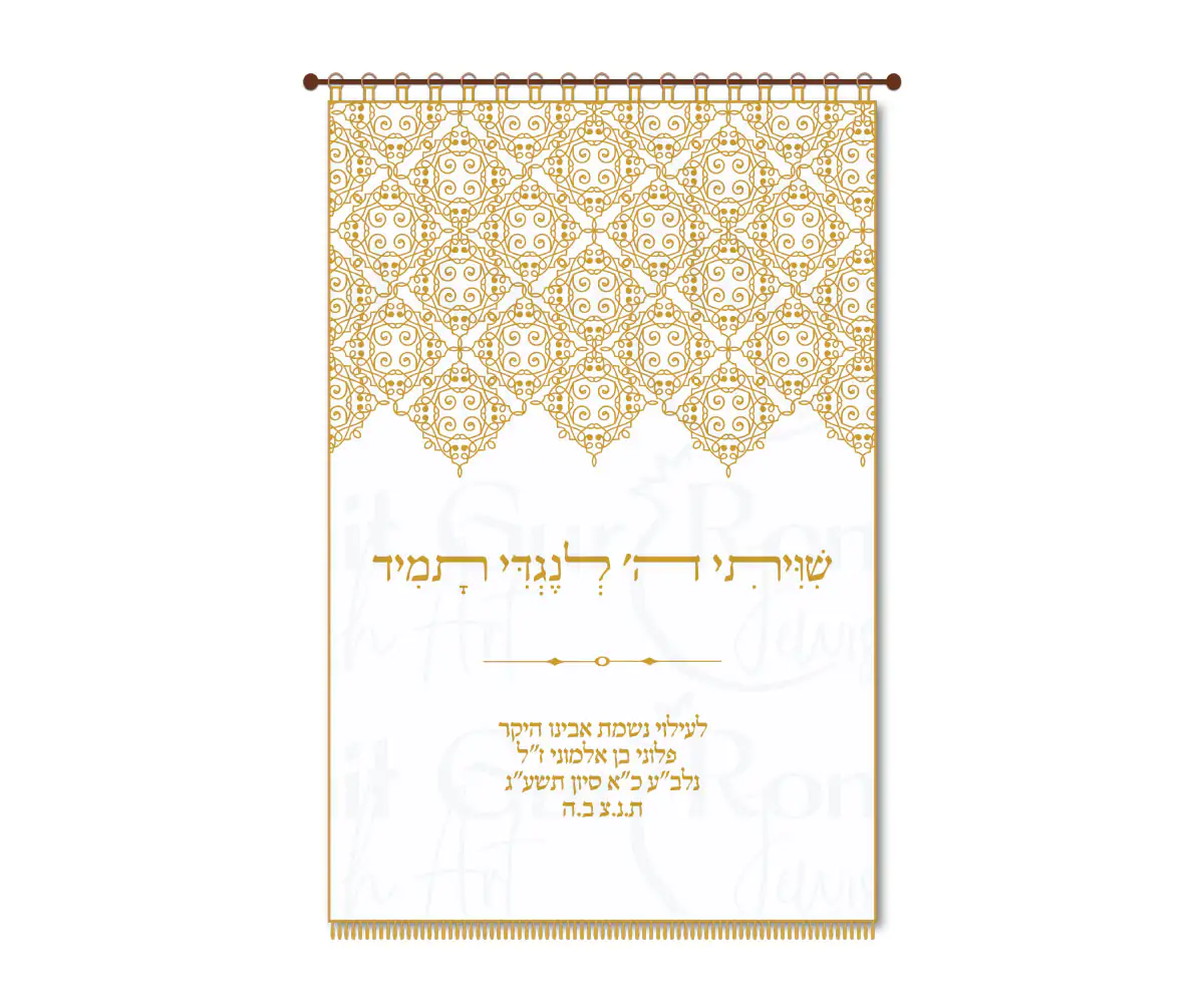 פרוכת לארון קודש של המעצבת רונית גור. הפרוכות מעוטרת בדוגמת מדליונים בצבעים זהב או כסף. הפסוק ניתן לשנוי על לפי בחירת הלקוח . ניתן לבחור בין בד קטיפה למראה קלאסי או בד ארוג למראה מיוחד. כל הבדים ברמת איכות גבוה מאוד. ניתן לבחור את צורת התלייה- טבעות על מוט או ווים לתלייה על מסילה. ניתן לרקום הקדשה בתוספת תשלום. המוצר נתפר באיכות ובגימור גבוהים מאוד. מיוצר בישראל!