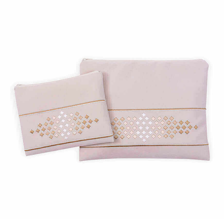 כיסוי לטלית ותפילין דגם מעויינים מבד קלינטקס איכותי בצבע אופוויט עם דוגמאת מעויינים בגווני חום של המעצבת רונית גור. הסט מגיע עם נילון קשיח לשמירה מקסימלית. המוצר נתפר באיכות ובגימור גבוהים מאוד. מיוצר בישראל!