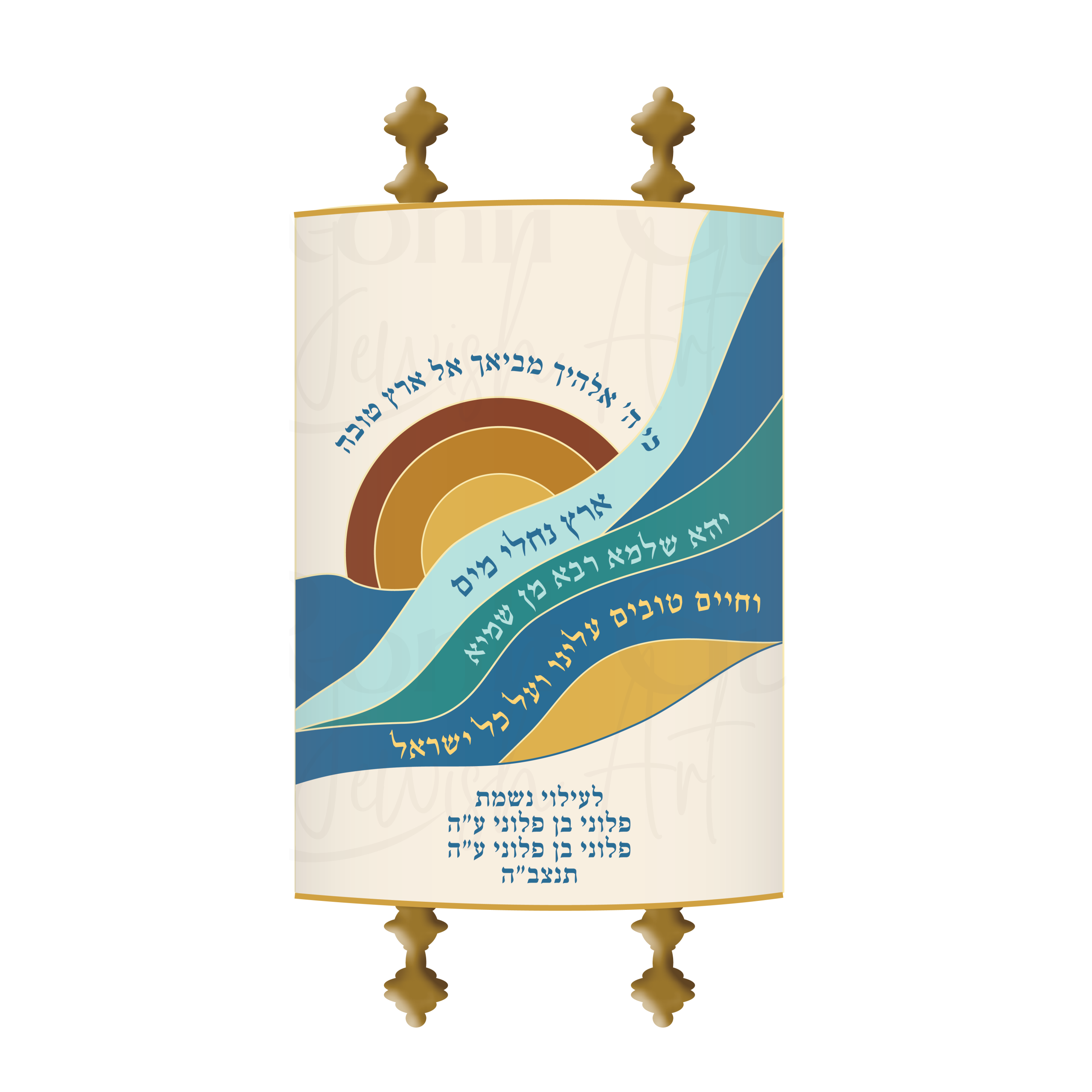 מעיל לספר תורה של המעצבת רונית גור. המעיל מעוטר באפליקציות גלים וברקמה, בעיצוב חדשני ומודרני.