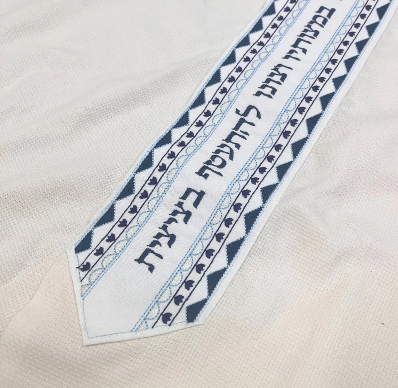 טלית צמר, עם עטרה רקומה עם ברכה "להתעטף בציצית " ופינות רקומות תואמות. מגיע עם תיק טלית תואם עם הפסוק "ברכנו אבינו כולנו כאחד באור פניך" ניתן לבחור בין טלית צמר. א.א, תשבץ או פאר קל