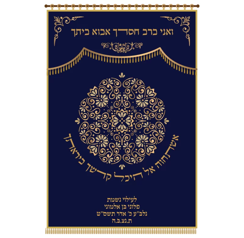 פרוכת לארון קודש של המעצבת רונית גור. הפרוכות מעוטרת בדוגמת מנדלה בתוספת כפורת, הפסוקניתן לשינוי על פי בחירת הלקוח . ניתן לבחור בין בד קטיפה למראה קלאסי או בד ארוג למראה מיוחד. כל הבדים ברמת איכות גבוהיים מאוד. ניתן לבחור את צורת התלייה- טבעות על מוט או ווים לתלייה על מסילה. ניתן לרקום הקדשה בתוספת תשלום. ההמוצר נתפר באיכות ובגימור גבוהים מאוד. מיוצר בישראל!