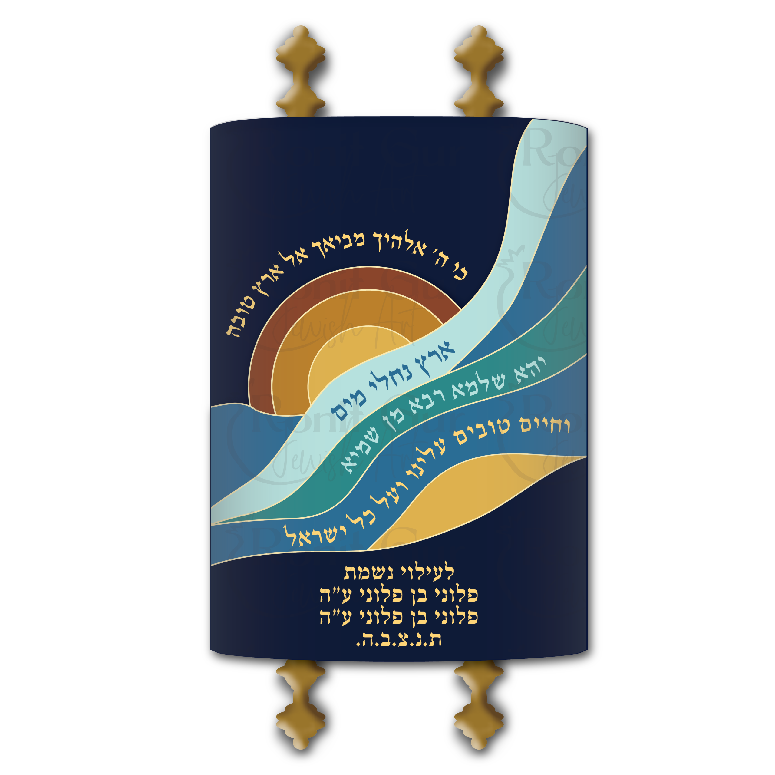 מעיל לספר תורה מנדלה בגוונים כחולים כחולים RGT-003