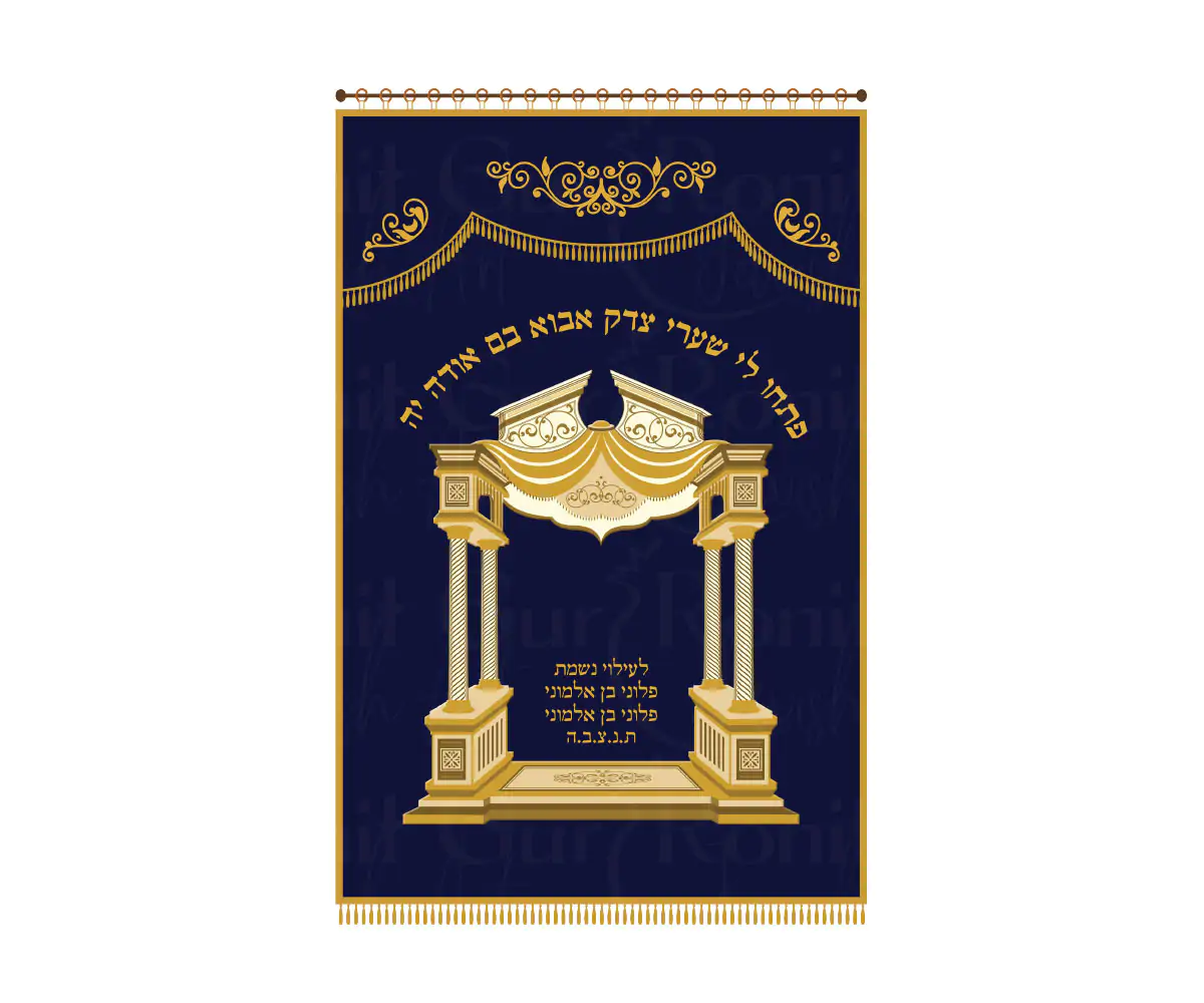 פרוכת לארון קודש של המעצבת רונית גור. על הפרוכת מופיע שר וילנא כמוטיב מרכזי, עשוי רקמה ובשילוב אפליקציות. הפסוק ניתן לשינוי. ניתן לבחור בין בד קטיפה למראה קלאסי או בד ארוג למראה מיוחד. כל הבדים ברמת איכות גבוהיים מאוד. ניתן לבחור את צורת התלייה- טבעות על מוט או ווים לתלייה על מסילה. ניתן לרקום הקדשה בתוספת תשלום. ההמוצר נתפר באיכות ובגימור גבוהים מאוד. מיוצר בישראל!